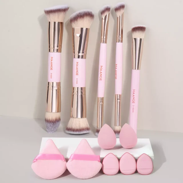 Unlike basic brush sets, this combo is thoughtfully designed to offer maximum function in a compact format. The dual-ended brushes reduce clutter in your makeup bag, while the triangle puffs give you control and versatility that traditional round sponges just can’t match. Made from durable materials and easy to clean, this set is built to last and look great on your vanity.