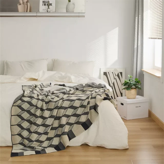 Whether you’re looking for a bedspread, quilt, or a cozy blanket for your sofa, the 3D Cube Cotton Knitted Plaid Blanket has got you covered. Its multi-functional design makes it perfect for: