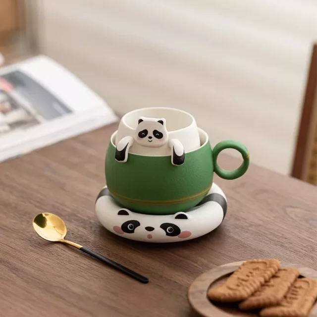 Cute Panda Ceramic Mug with Lid and Spoon for Coffee, Tea & Gifts