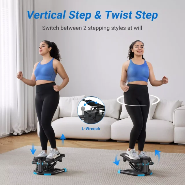 • Dual-Action Motion: Choose between vertical stepping or twisting for full-leg and waist workouts.