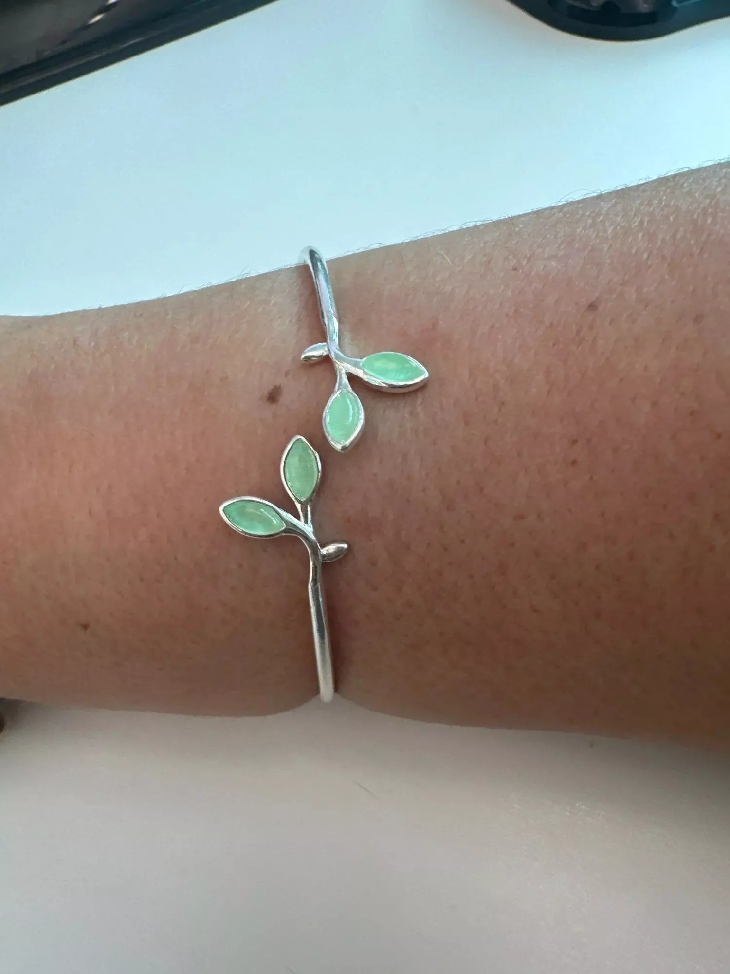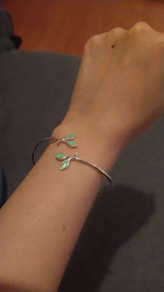 Discovering this cuff was like finding a treasure, a piece that perfectly marries nature's whimsy with refined elegance. The design, reminiscent of olive branches, symbolizes peace and prosperity, which adds a meaningful layer to its beauty. Intricately detailed leaves, adorned with sparkling zircon stones, weave around the wrist, creating a stunning display of craftsmanship and style. The quality is palpable, with a weight and texture that speak to its sterling construction and careful assembly. What I adore about this bracelet is its versatility. It enhances any outfit, bringing a touch of sophistication to casual wear or adding a final, elegant touch to formal attire. The way the light plays off the zircon stones adds a captivating sparkle, yet it’s the subtlety of the design that truly makes it a standout piece. The comfort factor is also remarkable. Despite its solid appearance, the cuff is surprisingly light and conforms gently to my wrist, allowing for day-long wear without discomfort. It’s a testament to the thoughtfulness that went into its design, ensuring that beauty and comfort coexist harmoniously. This bracelet has not only become a favorite accessory of mine but also a piece that holds sentimental value, representing a blend of artistic beauty and personal style. It’s a conversation starter, often eliciting admiration and inquiries from friends and strangers alike, which makes me feel proud of owning such a unique and well-crafted piece of jewelry.