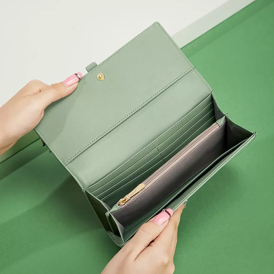 With its elegant design and multifunctional interior, this wallet is perfect for the modern woman on the go. Whether you’re running errands, attending a formal event, or traveling, it keeps your essentials secure and organized. The combination of stylish design and practical features makes it a unique accessory that stands out. Its lightweight and compact form factor does not compromise on space, ensuring that all your cards, coins, and bills are easily accessible.