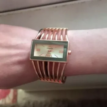 The watch is even more stunning in person than in the photo, boasting beauty, elegance, and ease of wear. Its distinctive style makes it suitable for any event. I purchased it for my mom, and she was very pleased and satisfied with it.