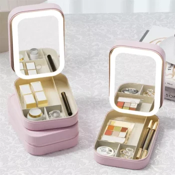 LED Makeup Case with Mirror – Portable Cosmetic Storage Box with Light