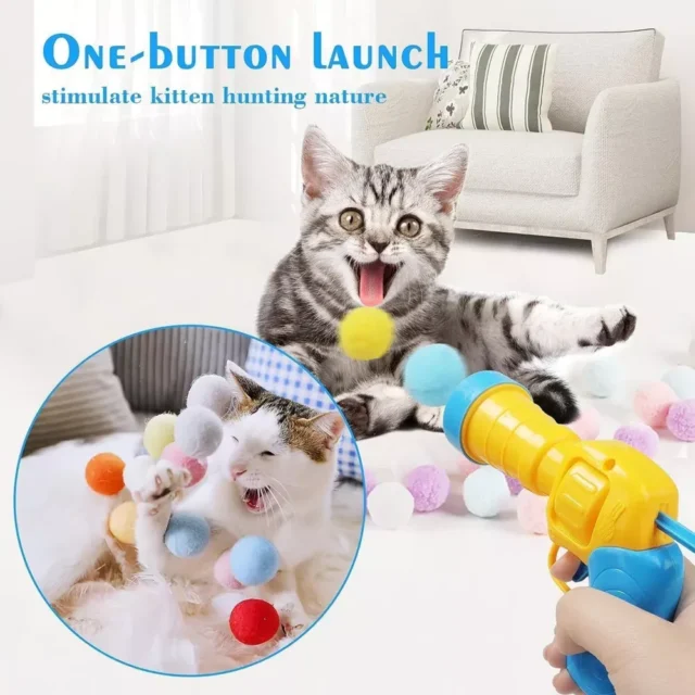 Give your furry friend a new favorite game with this Interactive Cat Toy Launcher! Designed for indoor cats and playful kittens, this fun and easy-to-use launcher fires soft plush pompom balls up to 13 feet—igniting your cat’s natural hunting instincts. With a simple click, you’ll send the ball flying, and your cat will dash, jump, and pounce with excitement. Whether your pet is full of energy or in need of a little extra stimulation, this toy turns ordinary playtime into a thrilling chase.