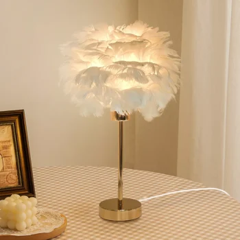 Romantic Feather Table Lamp – Soft Glow Bedside Light for Girls & Weddings