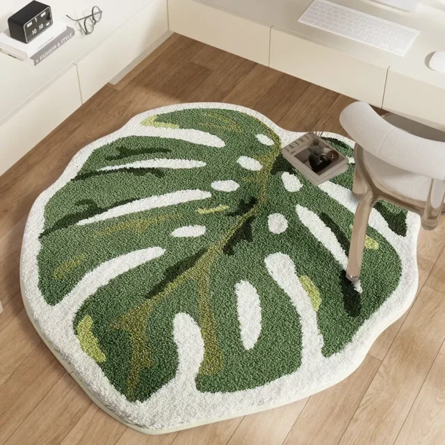 Monstera Leaf Rug – Soft Nordic Plant-Shaped Floor Mat with Non-Slip Backing