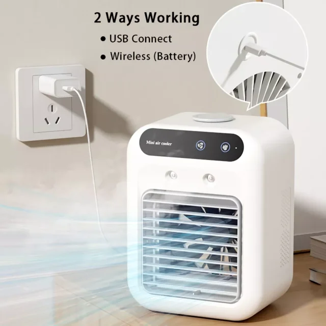 This fan is more than just a cooling device—it’s a lifestyle upgrade. Whether you’re working, studying, or just relaxing, the Portable Mini USB Air Cooling Fan ensures you stay cool and comfortable. Its dual functionality as a fan and humidifier sets it apart, providing you with a refreshing and soothing environment. The fan’s mini design makes it perfect for any space, while its battery operation offers unmatched convenience.