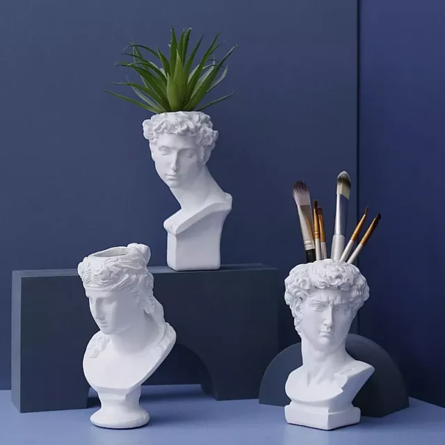 Enhance your desk or vanity with the Retro White Statue Pen Holder and Desk Organizer. Its timeless design and practical functionality make it a must-have accessory for anyone looking to add a touch of elegance to their space. Order yours today and experience the perfect blend of art and organization.