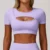 Made from a high-performance blend of 78% nylon and 22% spandex, this shirt hugs your curves while allowing full freedom of movement. The cropped cut and short sleeves are flattering and functional, ideal for intense sessions or light leisure. And with a selection of rich, empowering colors — from deep black to bold purple and serene cream — there’s a shade for every mood.