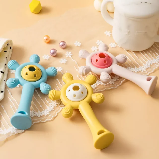 Teething can be a tough phase, but this teether toy is here to help. It’s more than just a teether—it’s a rattle, a sensory toy, and a developmental tool all in one. The bright, cheerful design keeps your baby engaged, while the soft silicone soothes sore gums during the crucial teething months. Because it’s made from safe, non-toxic materials, it’s also perfect for nursing time or calming routines.
