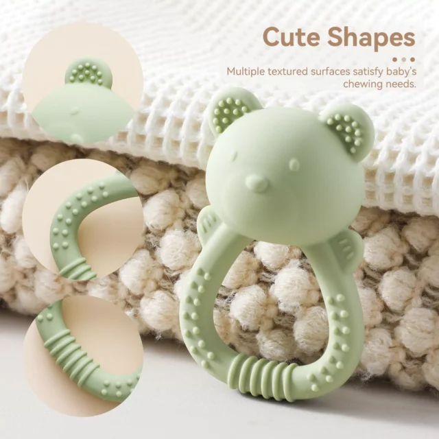 Crafted from high-quality, BPA-free silicone, it’s soft on sensitive gums yet durable enough to withstand daily chewing. Its bright colors and friendly teddy bear shape instantly catch a baby’s eye, keeping them engaged while aiding in visual and tactile development. The lightweight, easy-to-hold design encourages babies to grab, chew, and shake — enhancing fine motor skills and stimulating early cognitive growth.