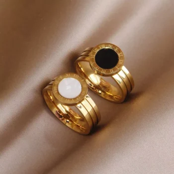 Elegant Stainless Steel Roman Acrylic Shell Ring for Women