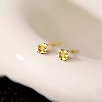Sterling Silver Zircon Square Stud Earrings