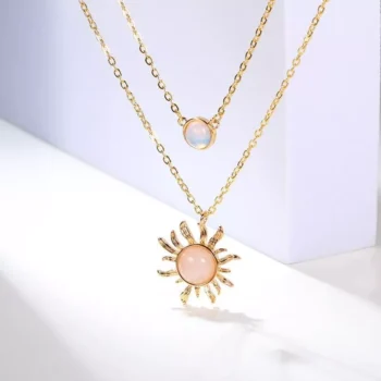 Elegant Sun Opal Pendant Necklace – Shiny Stainless Steel Chain for Women