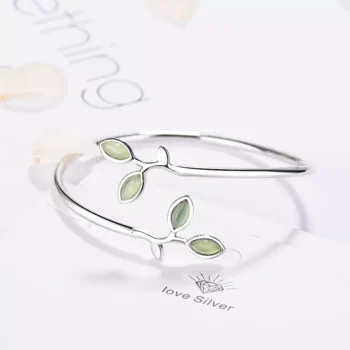 Elegant 925 Sterling Silver Zircon Olive Leaf Cuff Bracelet