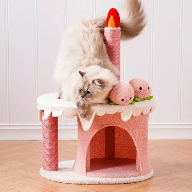 Perfect for indoor cats, this charming cat tree is ideal for everyday play, nap time, or birthday-themed photo ops. Its multi-functional design caters to your cat’s instinctual needs—offering space for scratching, climbing, hiding, and relaxing. The durable sisal-wrapped posts and cozy plush hideaway make it a must-have for any cat parent looking to treat their furry companion.