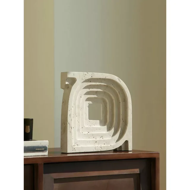 Transform your dining room, entrance, or living room with this stunning Marble Centerpiece. Crafted from exquisite travertine stone, this abstract geometric art sculpture is a perfect blend of vintage charm and modern sophistication. Its antique imitation style adds a touch of classic elegance to any space, making it a must-have decor piece for those who appreciate fine art and timeless beauty.