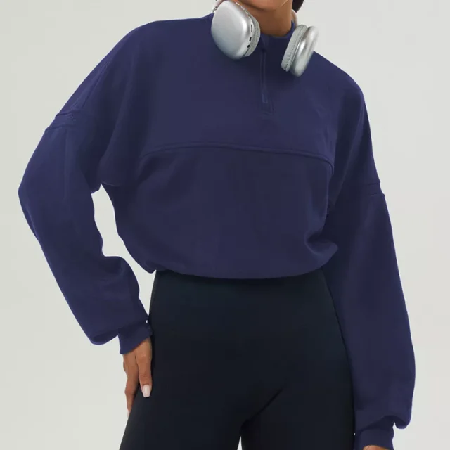 Women’s Half-Zip Cropped Running Sweatshirt – Long Sleeve, Quick Dry, Loose Fit